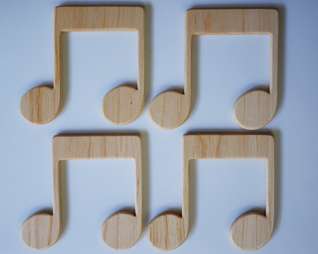 板に音符の絵が書かれた教材はよくあるらしいのですが、こういった音符の形の教材はなかなかないとのことで。
