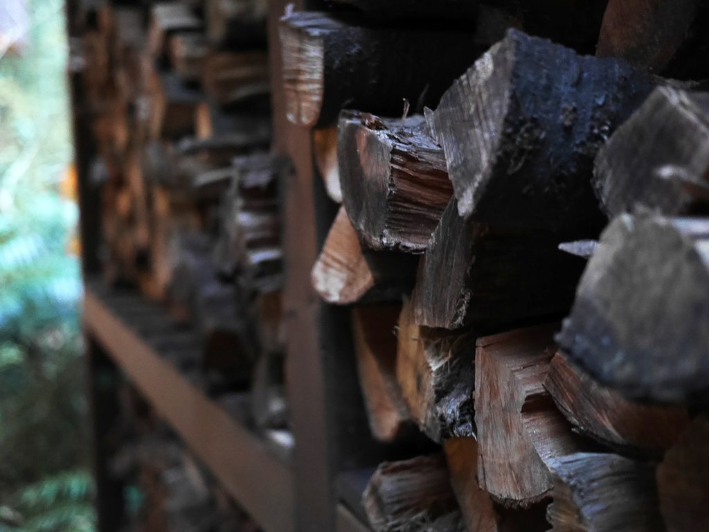 原木をもらってくる→車から庭に運ぶ→チェンソーで切る→割る→積む→2年くらい乾燥させる