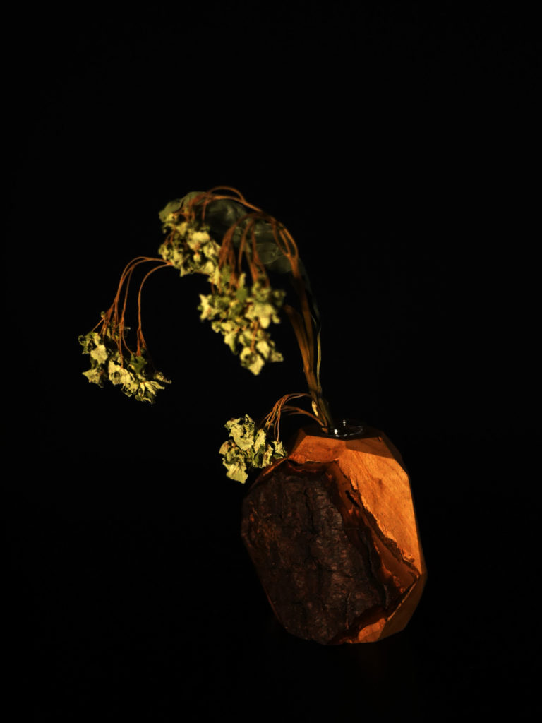 その一本の薪が持つ雰囲気や質感、欠点も敢えて活かすことで、世界に1つだけの一輪挿しになってくれています。