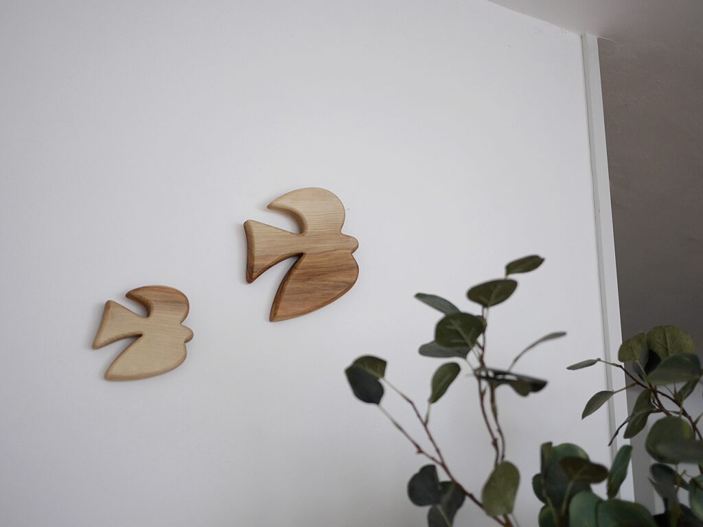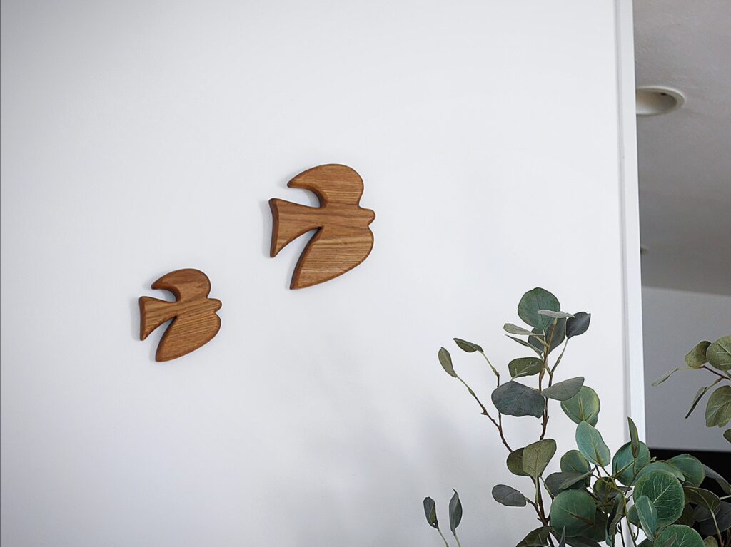 羽ばたく鳥を 壁に飾る