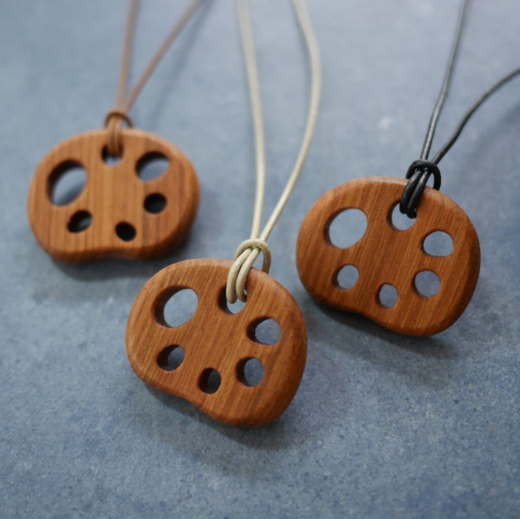 レザーコードネックレスのシリーズに、新たに蓮根モチーフが加わりました