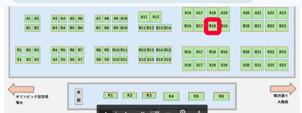 画像内の赤線 ブース番号「B18」でお待ちしております