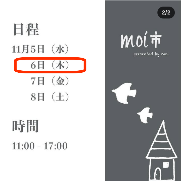 素敵なもの、美味しいものが集まりますので、詳しくはmoiさんのインスタグラムでご確認くださいませ