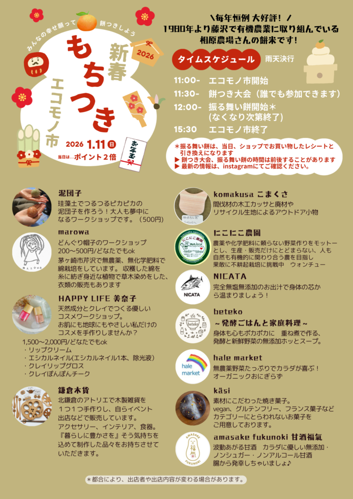辻堂にある素敵なお店、ecomoさんにて今年も出店させていただきます