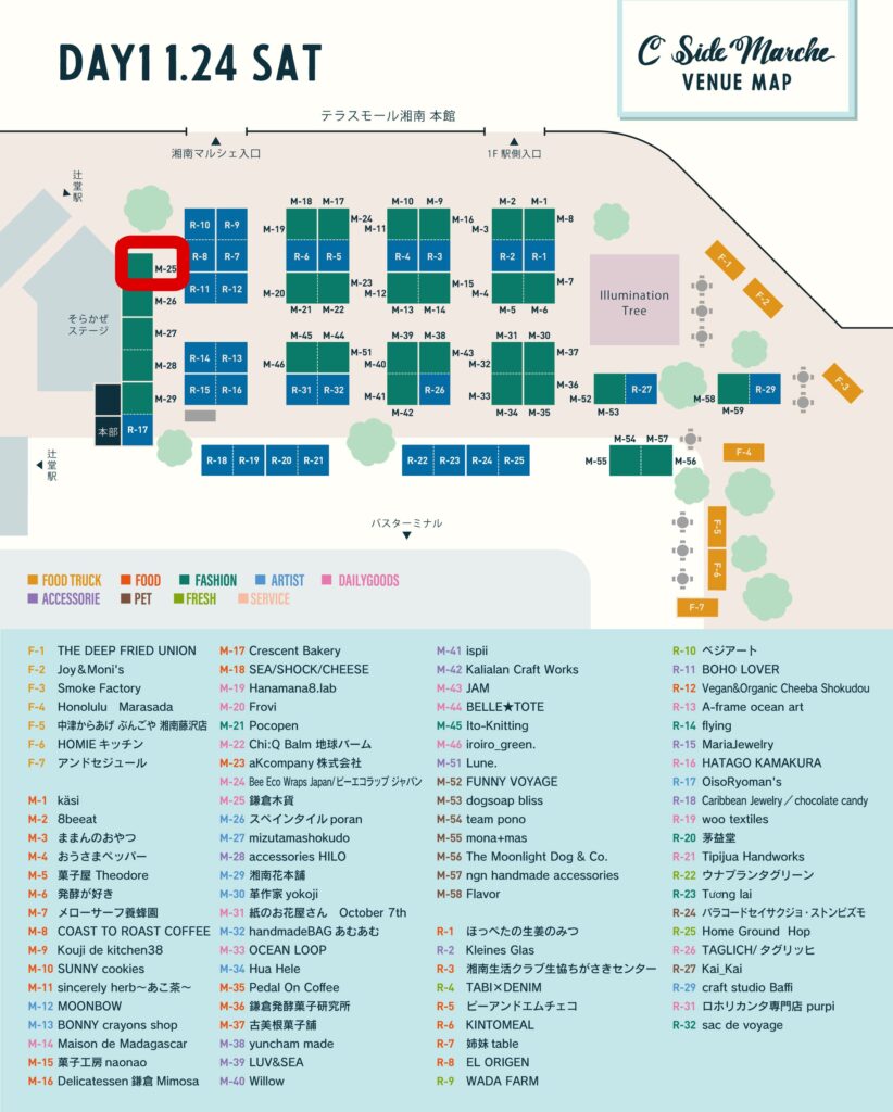辻堂駅降りて目の前の非常にアクセスの良い会場に素敵なもの、美味しいものが集まります
